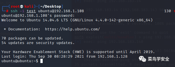 再使用ssh去连接ssh -i test ubuntu@192.168.1.108