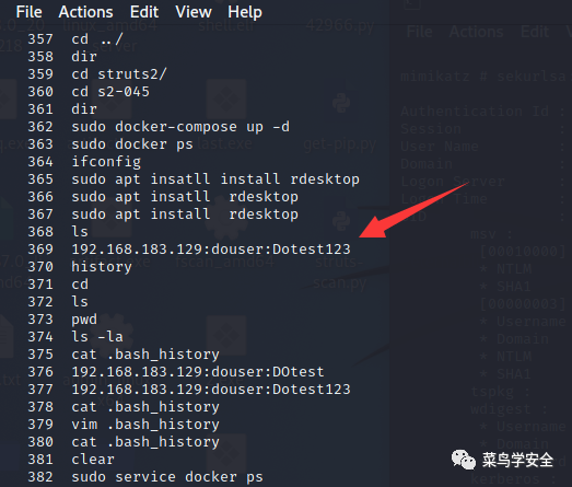 win7抓取密码就比较轻松了,这里也是直接抓到明文。也跟上面历史命令相呼应。