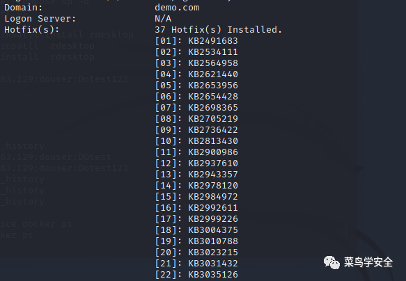 浏览器密码等也是可以翻一下的,比较该主机已经在域内了,很多信息可能对我们拿下域控很有帮助。补丁还是打了不少,不过由于操作系统有点老了,总都会有些洞,经过对比发现ms14-068的补丁并没有安装,是可以利用的。