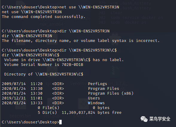 通过ipc连接或者dir可以直接访问域控机器,抓取密码的信息中已经有了域控机器名。