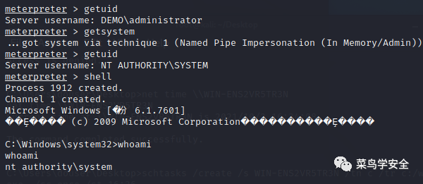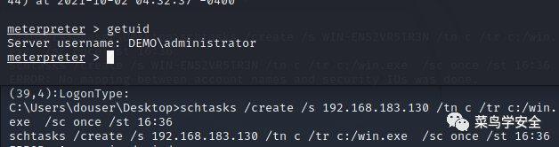 有了ipc连接就可以计划任务上线了。同样生成一个正向的马。上传到DC机器。查看时间,并设置计划任务执行。