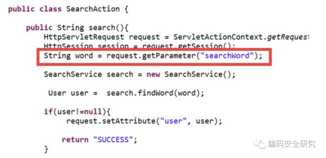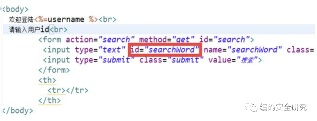 其中request.getParameter("searchWord")中的参数“searchWord”是从前端获取到的,也就是jsp页面中input标签中id为“searchWord”的值,如下: