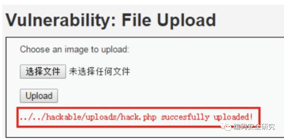 可以看到,服务器对上传文件的类型、内容没有做任何的检查、过滤,存在明显的文件上传漏洞。上传文件hack.php(一句话木马):