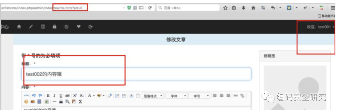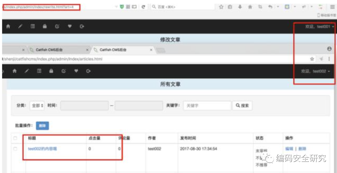 在test001账号访问的页面URL中直接将参数art=4改成art=6,则test001账号就可以访问原本只能被test002号访问的数据,如下所示: