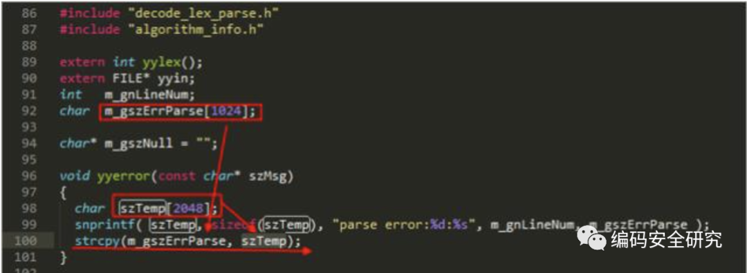 在代码100行处,数组在复制过程中,后面一个数组的长度是前一个数组的两倍,当需要复制的数据超过第一个数组的数组长度时,对数组完成复制后,由于数组没有结束标识,读取数组数据时存在内存溢出的可能性。