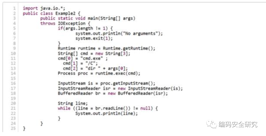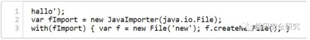 以上代码允许用户注入任意的代码,若其中args[0]参数设置如下,则将允许恶意用户创建任意文件。