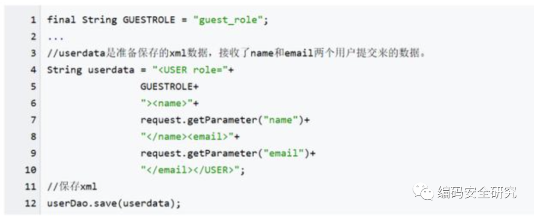 XML注入攻击,和SQL注入的原理一样,都是攻击者输入恶意的代码来执行自身权限以外的功能。XML是存储数据的一种方式,如果在修改或者查询时,没有做转义,直接输入或输出数据,都将导致XML注入漏洞。攻击者可以修改XML数据格式,增加新的XML节点,对数据处理流程产生影响。