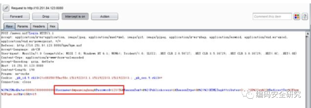 发现密码在传输过程当中未进行任何加密处理,直接已明文形式进行传输,这样很容易被第3方监听并获取明文的密码。
