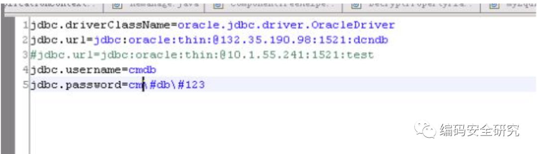 如果有一个具备中间件服务器机器访问权限的人,看到了这个例如applicationContext.xml的文件,并且打开该文件,就会知道数据库的用户名和密码是什么。