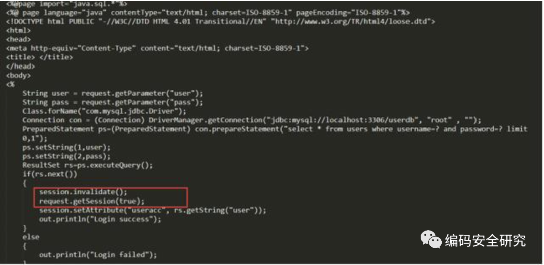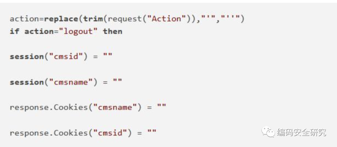 下面一段存在漏洞的代码中,没有对session做一个失效的处理。