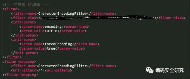 在该配置文件中,只配置了编码过滤器,而没有配置全局危险字符过滤器。