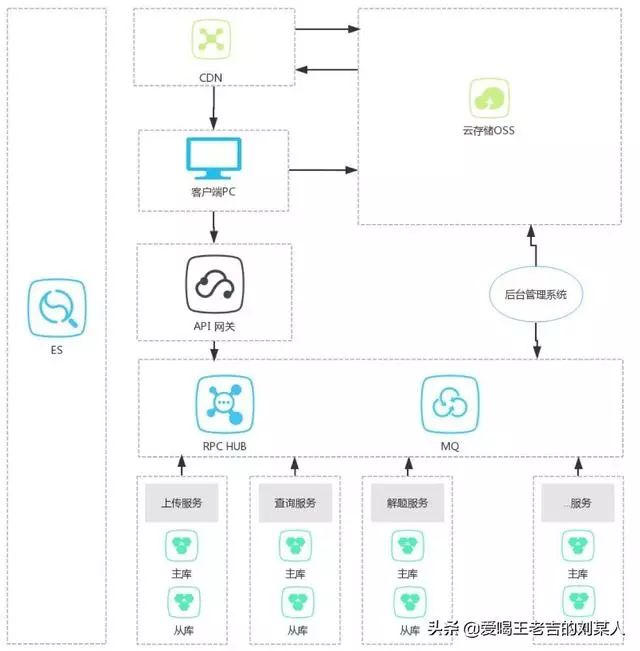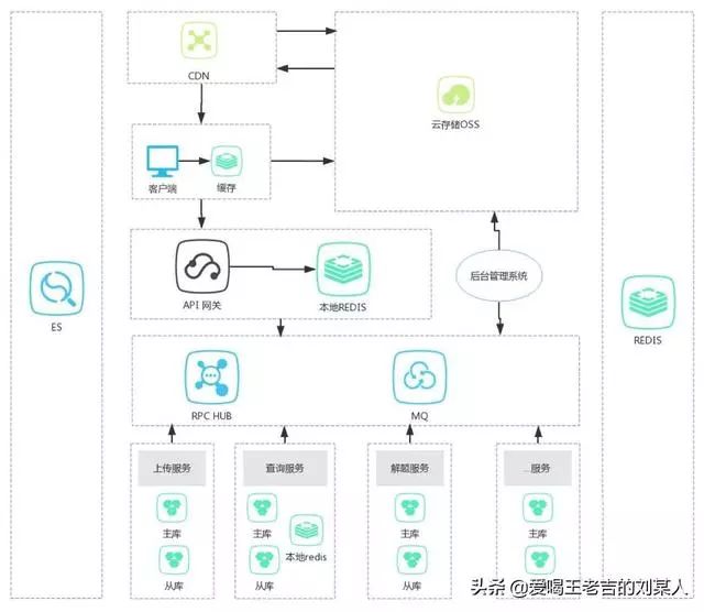 如上图所示,我把业务分块,做了垂直切分,切成一个个独立的系统,每个系统各自衍化,有自己的库、缓存、ES等辅助系统,系统之间的实时交互通过RPC,异步交互通过MQ,通过这种组合,共同完成整个系统功能。