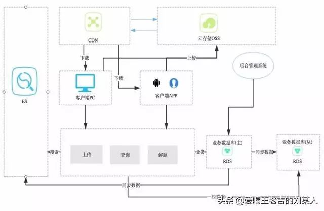 如上图所示,这种模式较单库单应用模式与内容分发模式多了几个部分,一个是业务数据库的主从分离,一个是引入了ES,为什么要这样?都解决了哪些痛点,下面具体结合业务需求场景进行叙述。