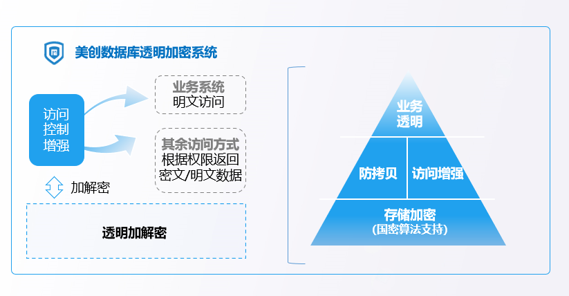 利用美创数据库透明加密系统,加密过程的性能影响可以忽略不计。简单来说就是在写数据时不加密,在读数据时根据访问者的权限,对返回数据进行加密处理,既实现了加密的效果又避免了对性能的影响。