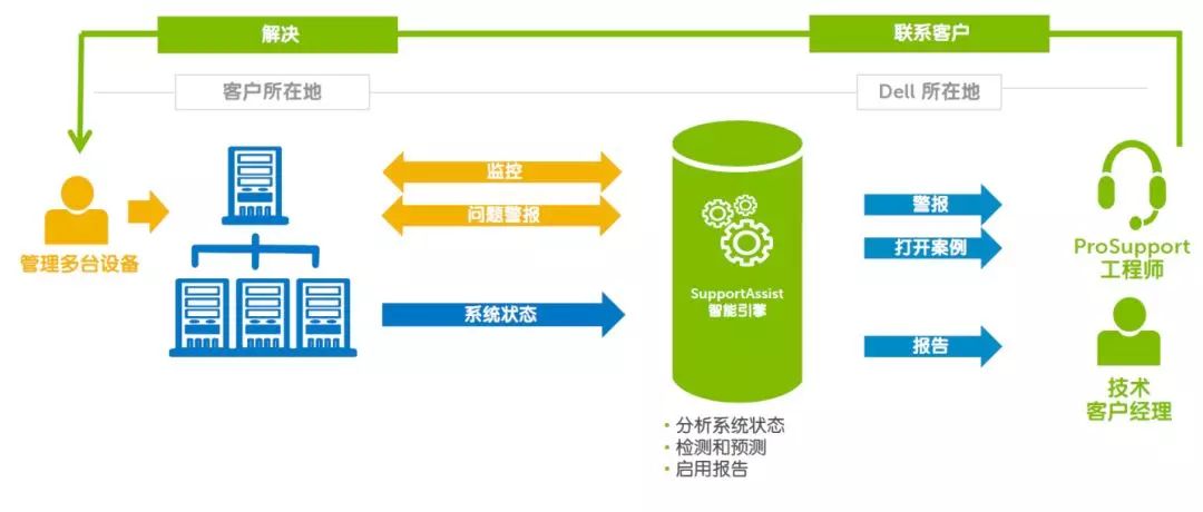 ❖ 设备出现故障时,能够主动报修,并创建CASE,加快故障处理速度(此解决方案是ProSupport和ProSupportPlus服务的一部分,无需另外付费);