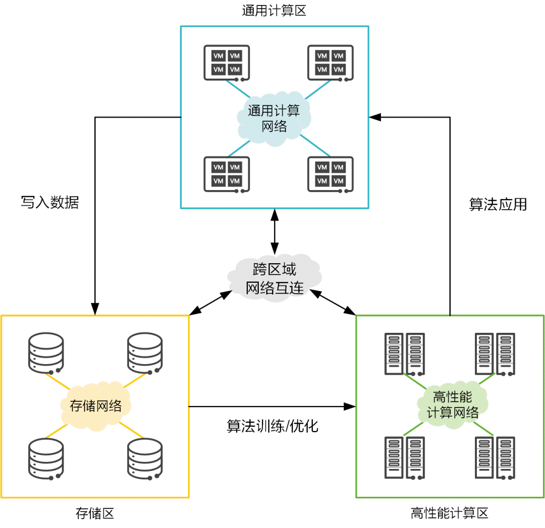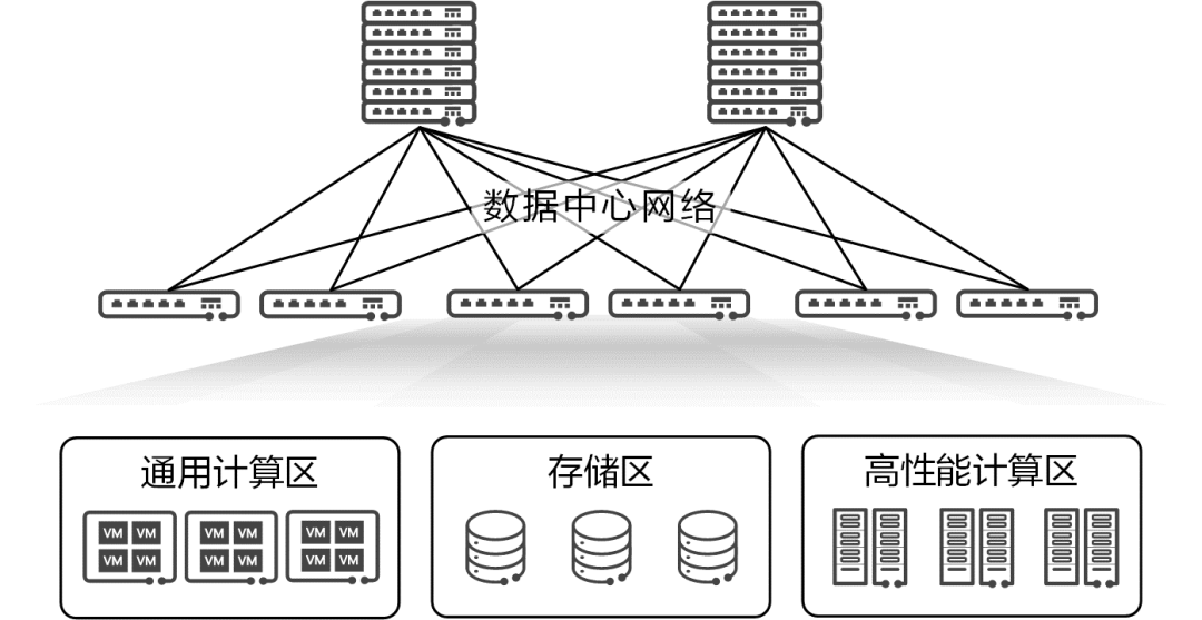 数据中心内存在三大资源区:通用计算区、高性能计算(HPC)区和存储区。
