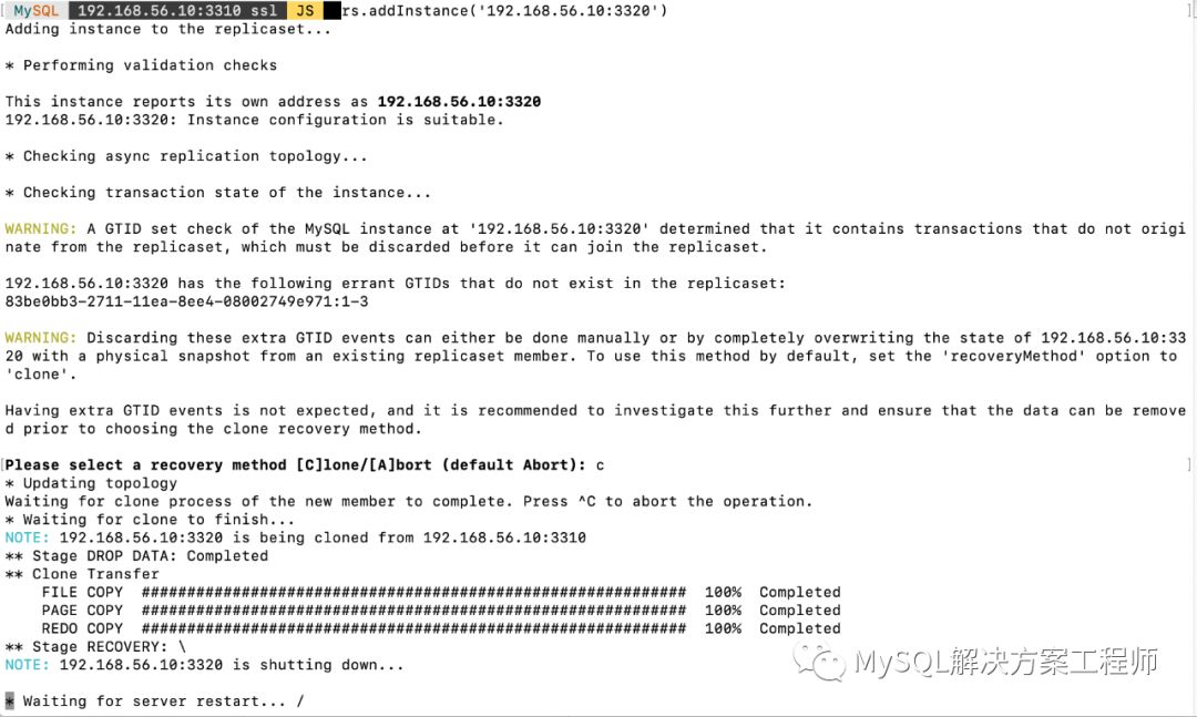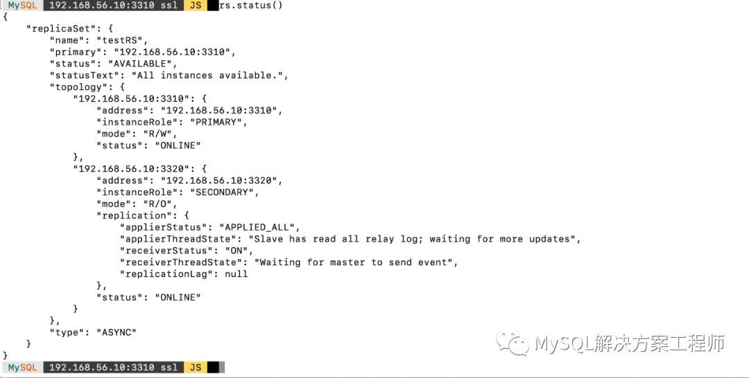 我的实验是在一台主机上做的,配置了两个实例,端口分别为3310和3320。另外需要安装最新的MySQL Shell 8.0.19