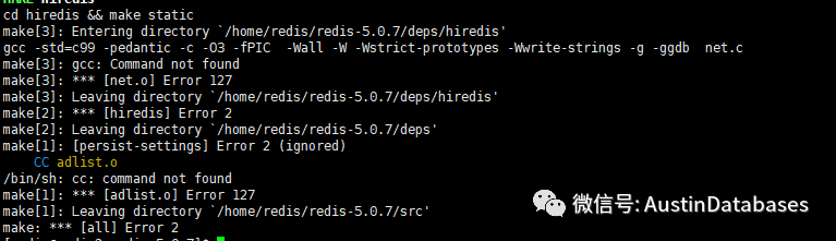 在编译的时候,可能还会报错,原因是你的安装的目录会不会是ROOT 的目录权限,而不是redis 的权限。