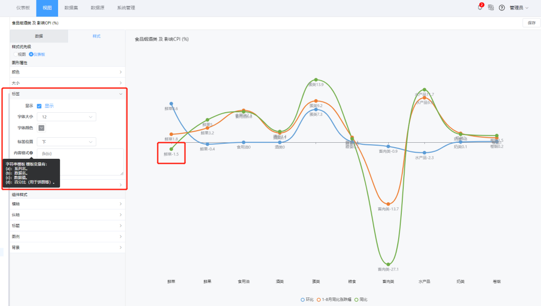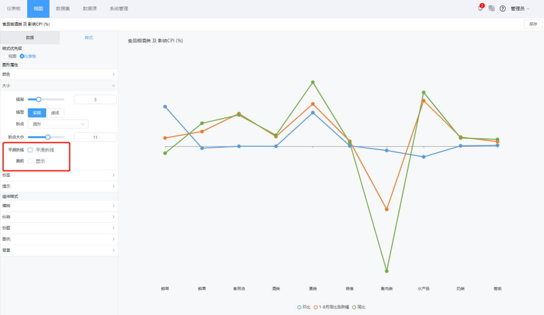在DataEase的“样式”模块中,可以对图形属性和组件样式进行优化调整。通过自定义,可设置图表展示哪些重要数据并隐藏非重要信息。同时进行图表美化,可以打造自己喜欢的风格。