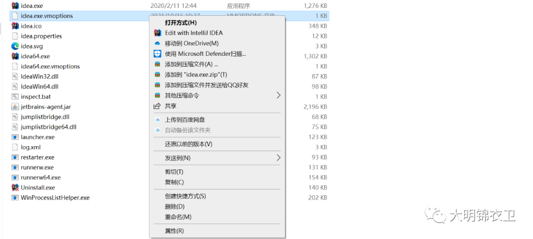 ②并在【bin】的目录中,找到【idea.exe.vmoptions】,右击选择点击【打开方式】,选择用记事本打开