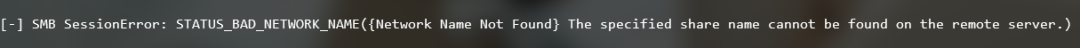 [-]SMB Session Error: STATUS_BAD_NETWORK_NAME({Network Name Not Found} The specified share name cannot be found on the remote server.)