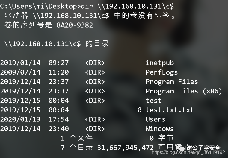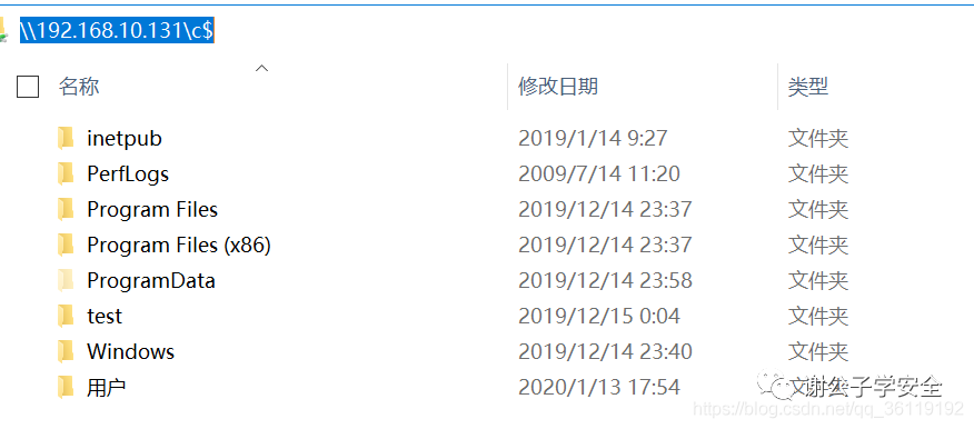也可以直接在文件管理用命令:\192.168.10.131\c$ 查看对应的文件及目录,也可以增删改查