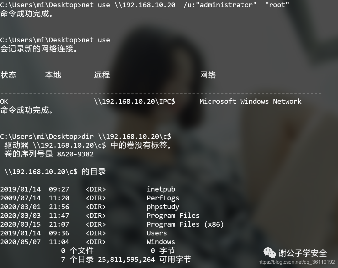 在Windows2003以后,空连接什么权限都没有,也就是说并没有太大实质的用处。有些主机的 Administrator 管理员的密码为空,那么我们可以尝试使用下面的命令进行连接,但是大多数情况下服务器都阻止了使用空密码进行连接。