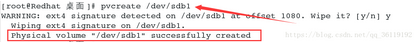 第二步:磁盘分区初始化为物理卷,pvcreate dev/sdb1