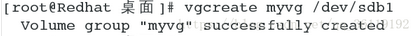 第三步:将初始化的物理卷加入卷组,vgcreate myvg dev/sdb1