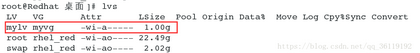 使用命令 lvs 查看下我们创建的逻辑卷 mylv