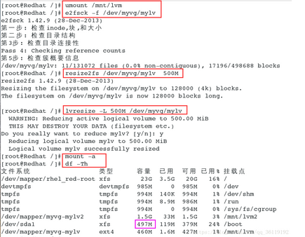 强制磁盘检查 e2fsck -f /dev/myvg/mylv