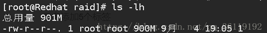 我们先往逻辑卷里写入900M的文件,模拟生产情况下的数据