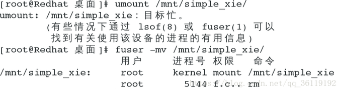 注:如果取消挂载设备的时候,显示设备正忙,可以使用 fuser -mv /mnt/xxx 看看是哪个进程在使用这个挂载点,然后杀死这个进程即可。