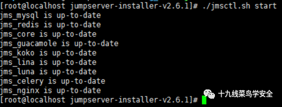 完成后进入安装目录/opt/jumpserver-installer-v2.6.1,执行如下命令即可启动jumpserver: