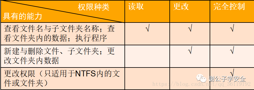 共享权限是基于文件夹的;NTFS 权限是基于文件的