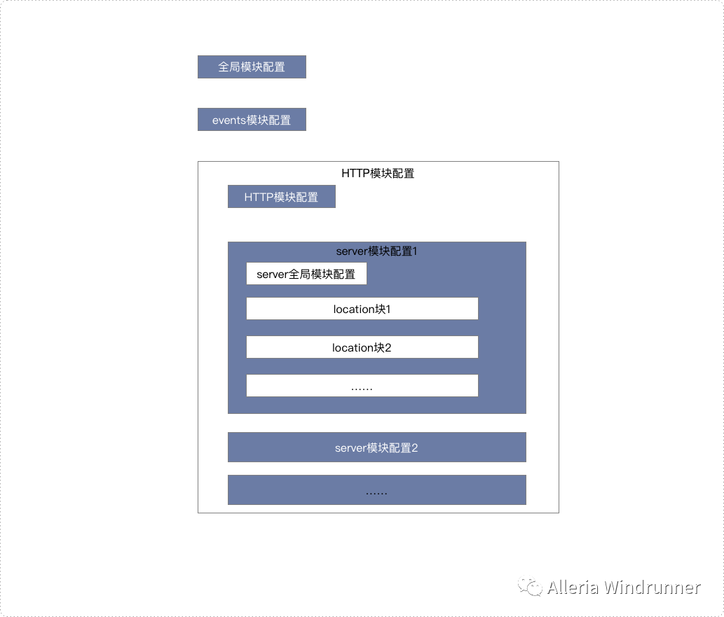 前面在介绍 Nginx 的时候,我有给你展示过这张 Nginx 配置的模块结构图,每个模块都可以做相应的配置。