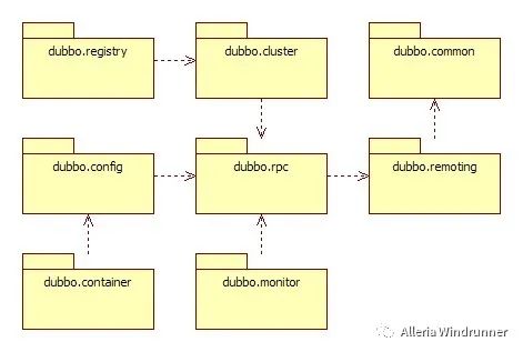 然后再来看一下Dubbo的模块分包,示意图如下: