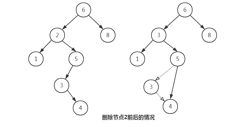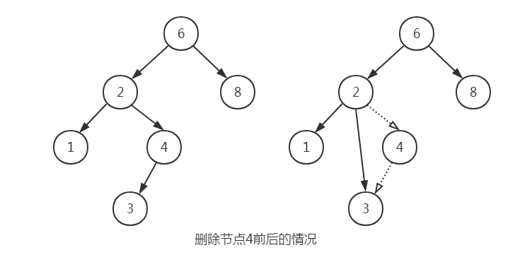 如果节点有一个儿子,则该节点的子节点需要在父节点删除后调整自己的链。