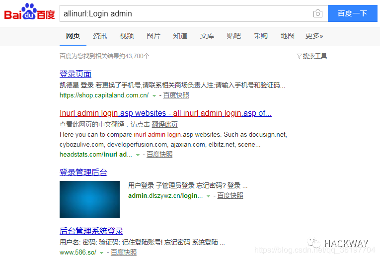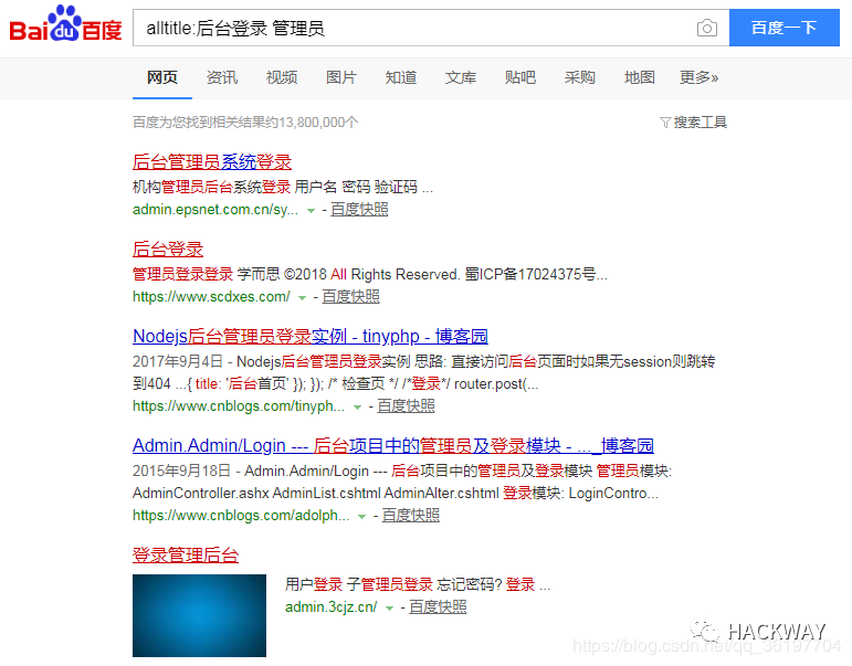 用法和intitle类似,只不过可以指定多个词,例如:“ alltitle:后台登录 管理员” ,将返回标题中包含“后台登录 管理员”的网页。