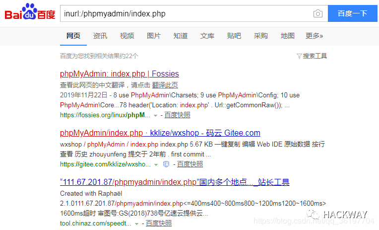 而上面这些命令中用的最多的就是 inurl: 了,利用这个命令,可以查到很多意想不到的东西: