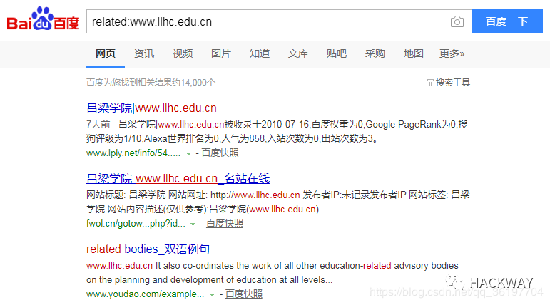 相似类型的网页,例如:related:www.llhc.edu.cn 将返回与 www.llhc.edu.cn 相似的页面,相似指的是网页的布局相似。
