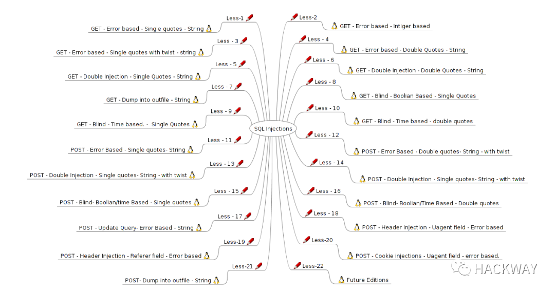 这次要使用的靶机环境是SQLi Labs,SQLi-Labs是一个专业的SQL注入练习平台,它是只专注SQL注入漏洞,以便我们研究学习SQL注入的整个注入过程,适用于GET和POST场景,包含了以下注入: