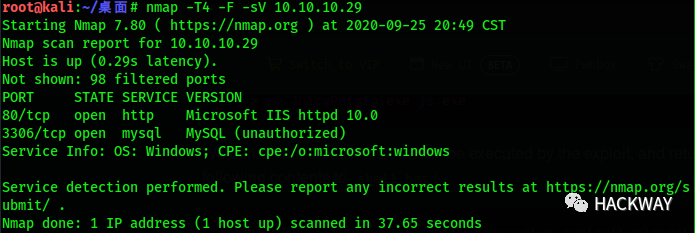 根据给出的IP地址,使用nmap进行扫描