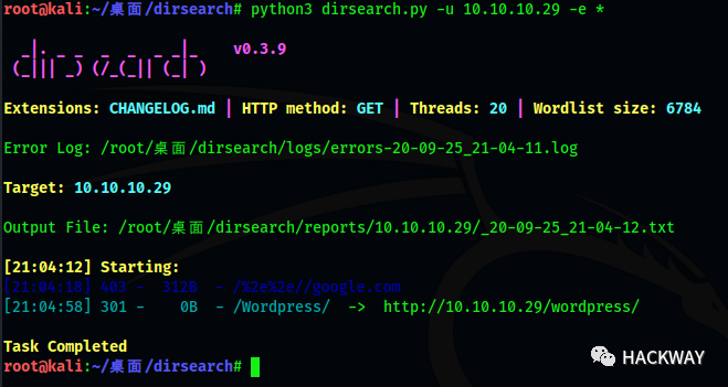 python3 dirsearch.py -u 10.10.10.29 -e *