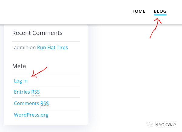 目录,我们去访问一下,发现有登录入口,先点击右上角BLOG,再点击Log in跳转至wordpress的登陆页面