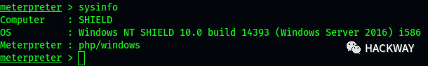 我们回到meterpreter shell中,执行命令sysinfo